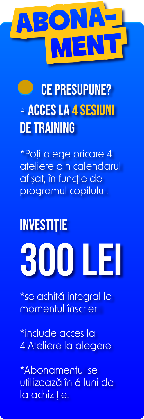 300 lei Abonamentul cu acces la 4 Ateliere